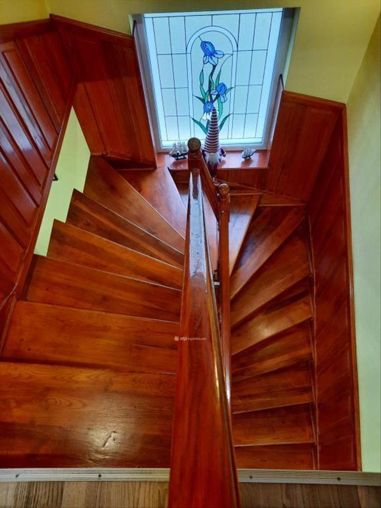 A ház elosztása is praktikus: a földszinten egy előszoba, fürdőszoba és ez 54 m2-es, tágas, világos amerikai konyhás nappali található, innen egy masszív, nagyon szép bükklépcsőn jutunk fel az emeletre, ahol fürdőszoba, wc, gardrób és 3 szoba található. a nagyobb szobából lehetőségünk van egy teraszra is kimenni.