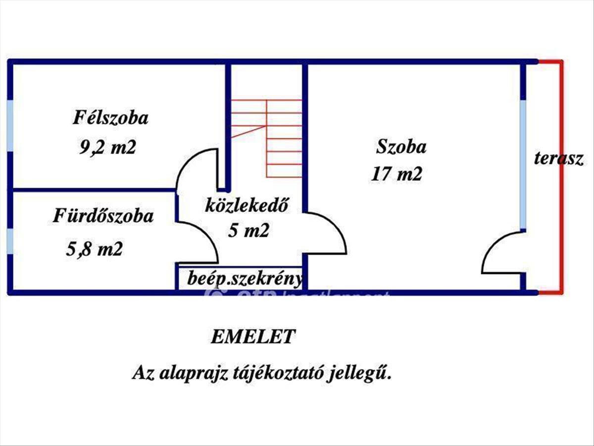 emeleten: egy szoba, loggia, egy félszoba, közlekedő, fürdőszoba található,