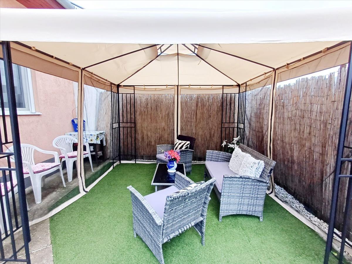 Az ingatlanhoz tartozik egy 20 m²-es saját kert, amelyben egy hangulatos filagória is helyet kapott, így kiváló lehetőséget nyújt pihenésre vagy baráti összejövetelekre. a vételár részét képezi a konyhabútor és a tűzhely, a további berendezési tárgyak megegyezés tárgyát képezik.