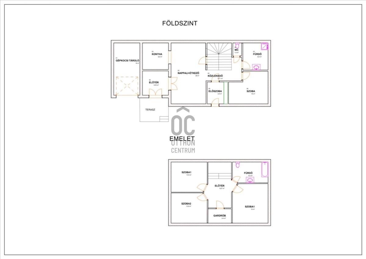 Elrendezés: 4 szoba + nappali, étkező és konyha külön, két fürdőszoba