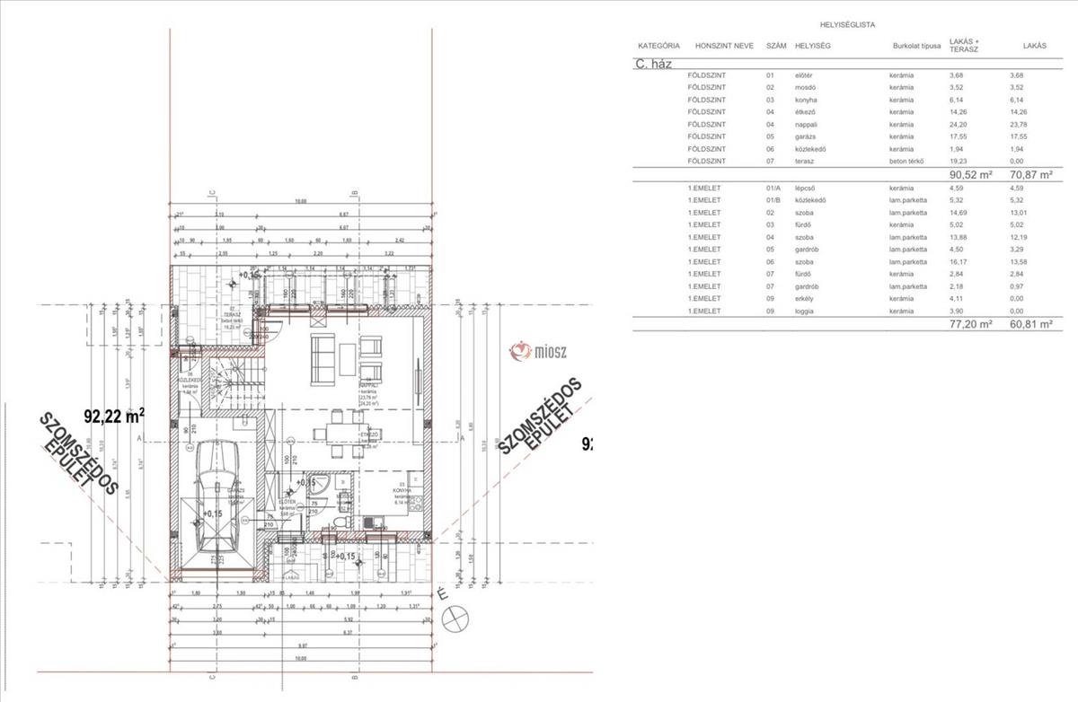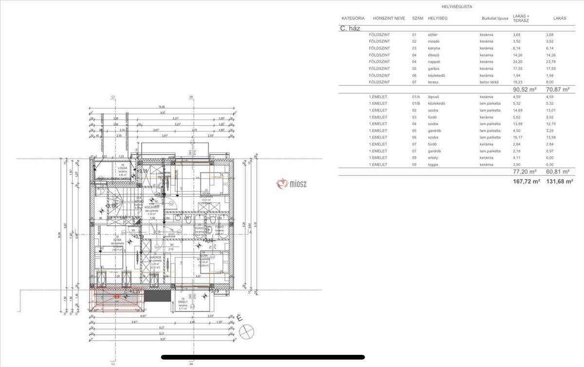 Ez a beton alapon tégla épület 147, 25 m2 (földszint + emelet összesen). 3 Wc-s fürdőszobával, 3 szoba + tágas amerikai konyhás nappalival, erkélyekkel, fedett terasszal minden igényt kielégít.