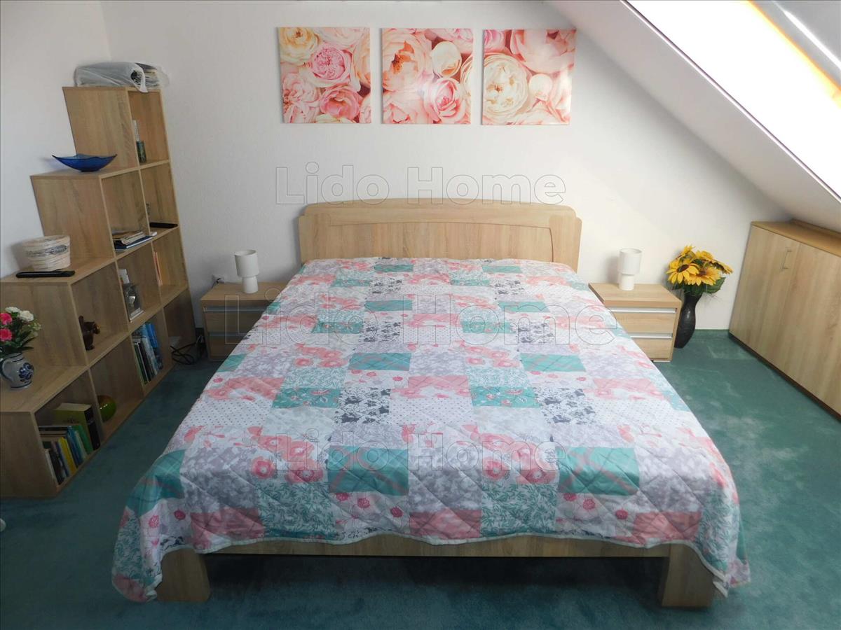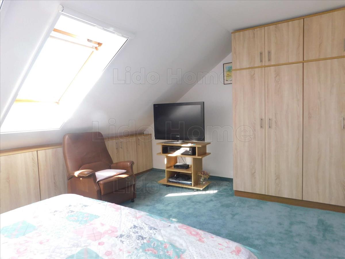 Tetőtéren külön lakrész épült: szoba, fürdőszoba, gardrób helyiségekkel.