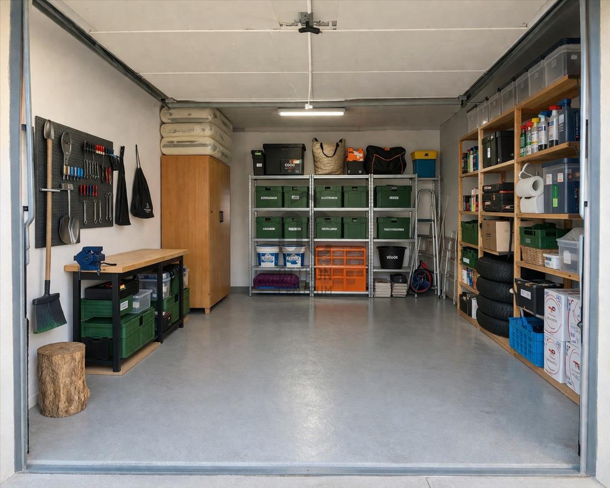- tágas garázs a hátsó udvarrészen