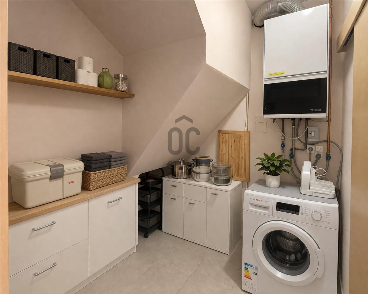 - Az alsó szinten egy tágas konyha–étkező–nappali található, amely kényelmes közösségi térként szolgál a mindennapokban.