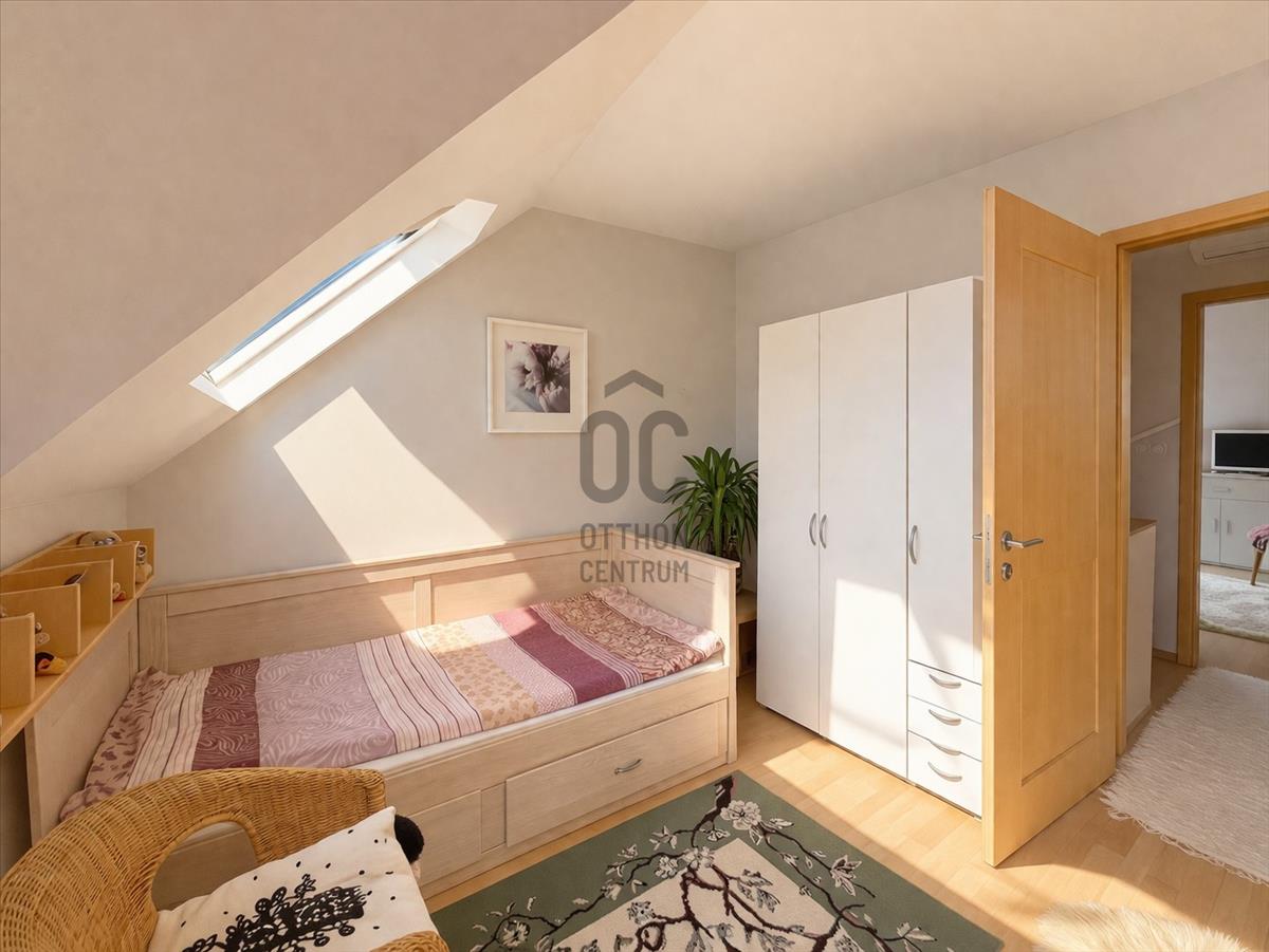 - Az emeleten 2 külön nyíló szoba található, amelyekhez saját fürdőszobák tartoznak. Ez a kialakítás különösen kényelmes családoknak, pároknak vagy akár vendégfogadás esetén is.