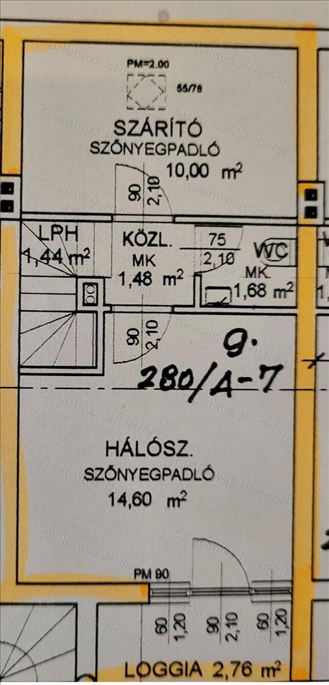 Felsőszint: közlekedő, szoba, félszoba, wc, loggia