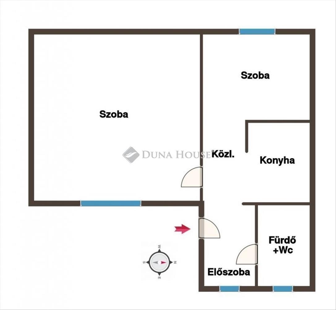 Az ingatlanban egy tágas nappali, egy hálószoba, egy konyha, egy előszoba, és egy ablakos fürdőszoba+wc, továbbá a helyiségeket összekötő közlekedő helyiségek találhatóak. Elrendezése okán összeköltözők, egyedülállók, idősek, kisebb családok számára ideális.