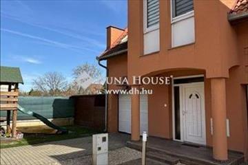 Kecskemét Hunyadiváros új építésű részén, zárt lakóparkban, újszerű, két szintes, nappali + 3 szobás 109 nm-es sorház garázzsal eladó, 210 nm-es telken.