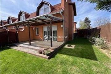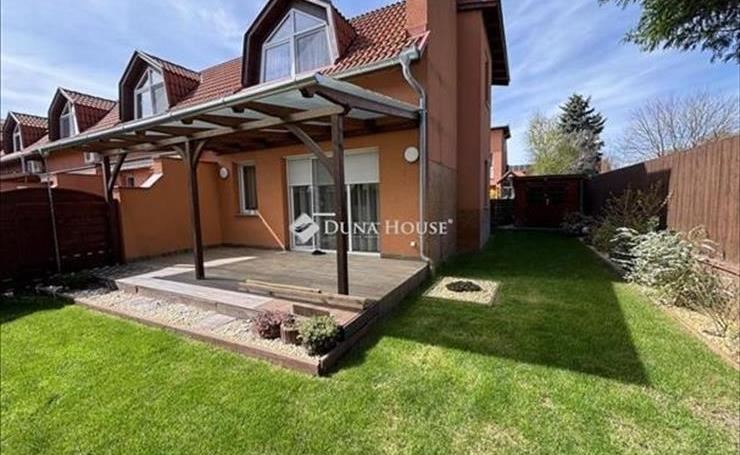 Kecskemét Hunyadiváros új építésű részén, zárt lakóparkban, újszerű, két szintes, nappali + 3 szobás 109 nm-es sorház garázzsal eladó, 210 nm-es telken.