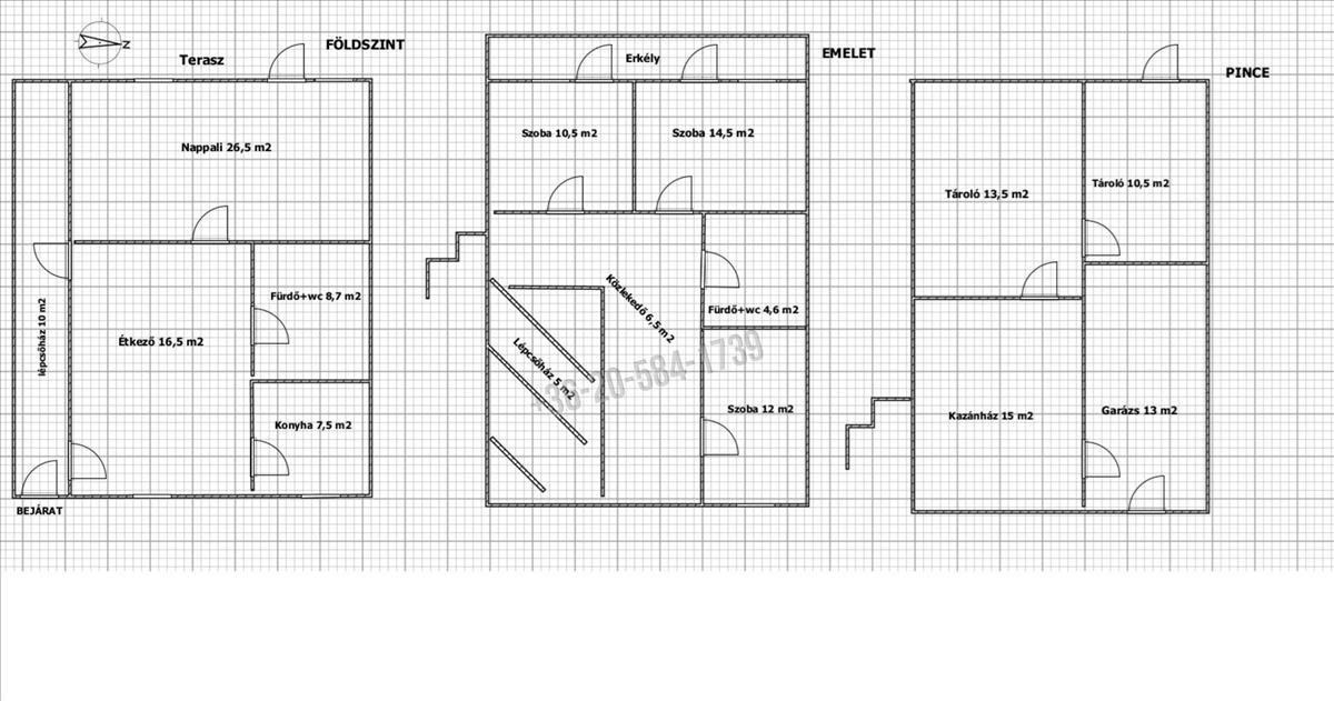 * Pinceszint mely 39 m2-es kazánház, 2 db tároló melyból a hátsó udvarra külön bejárattal rendelkezik valamint egy 13 m2-es garázs került kialakításra.