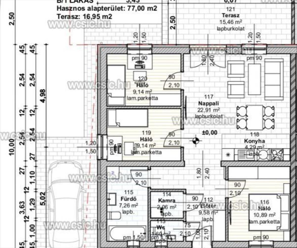 - Alapterület:77 m2