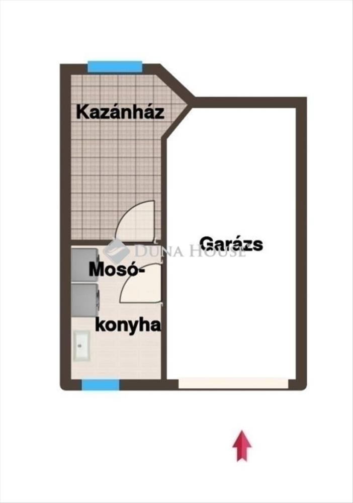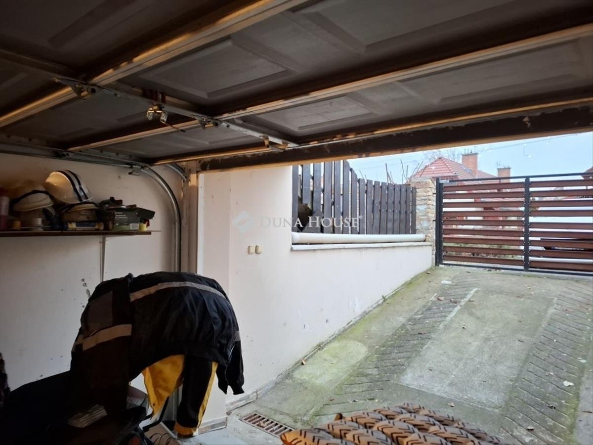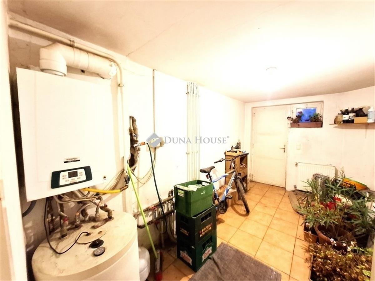 A szuterénszinten található egy rézsűn át megközelíthető fűtött garázs. Innen nyílik az ugyancsak fűtött, hidegburkolattal és komplett vizesblokkal, mosdóval felszerelt, ablakos, világos mosókonyha, ahol jelenleg a mosó- és szárítógép kapott helyet. a mosókonyhából nyílik a kondenzációs kazánnak is helyet adó, ugyancsak hidegburkolattal ellátott, udvarra nyíló ablakos tárolóhelyiség. Az automata garázskapu motoros kialakítású, kényelmes autós beállást biztosít.
