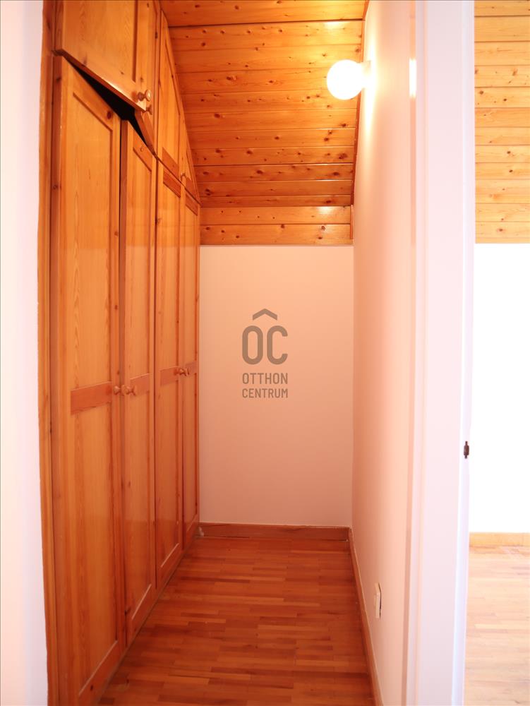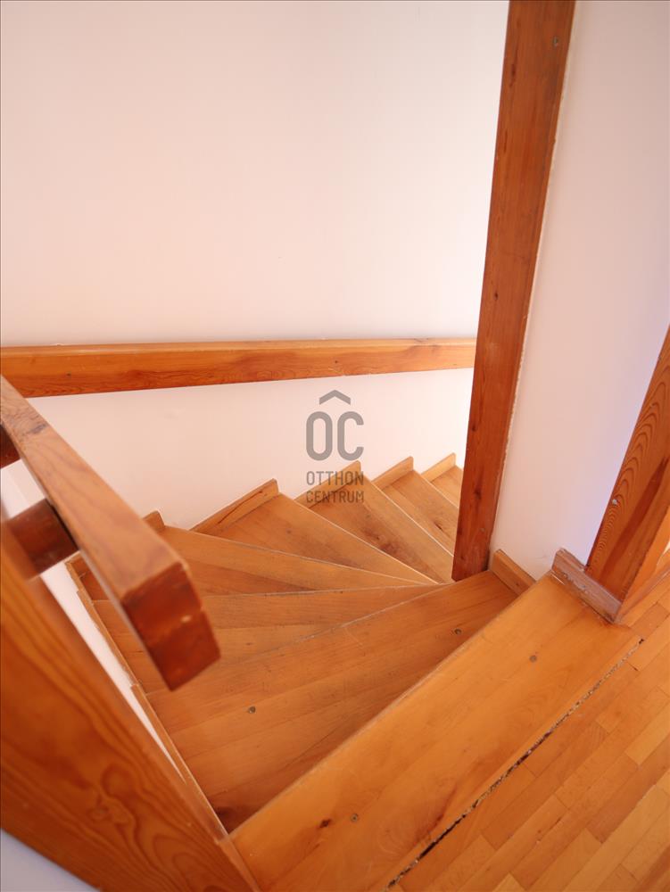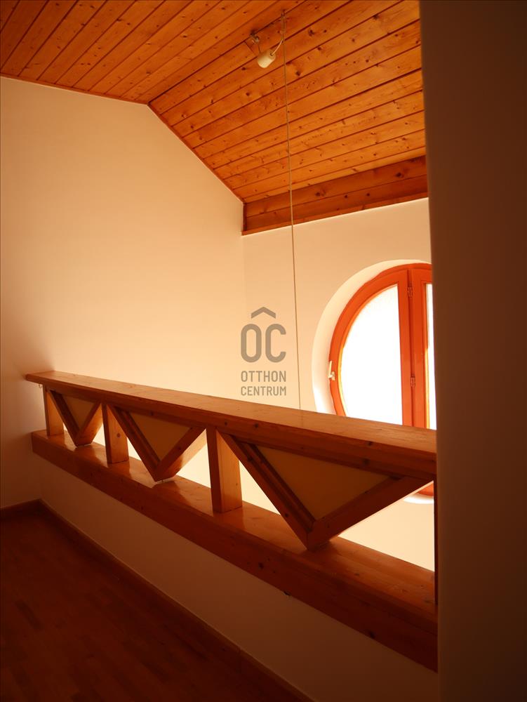 Szép kivitelű, kényelmes lépcső vezet az emeletre, ahol 5 hálószoba, 2 fürdőszoba, egy gardróbszoba van, valamint a folyosón beépített szekrény szolgálja a tárolási lehetőséget. a galéria jellegű folyosóról beláthatjuk a díjnyertes tervezésnek köszönhető izgalmas, napfényes tereket.