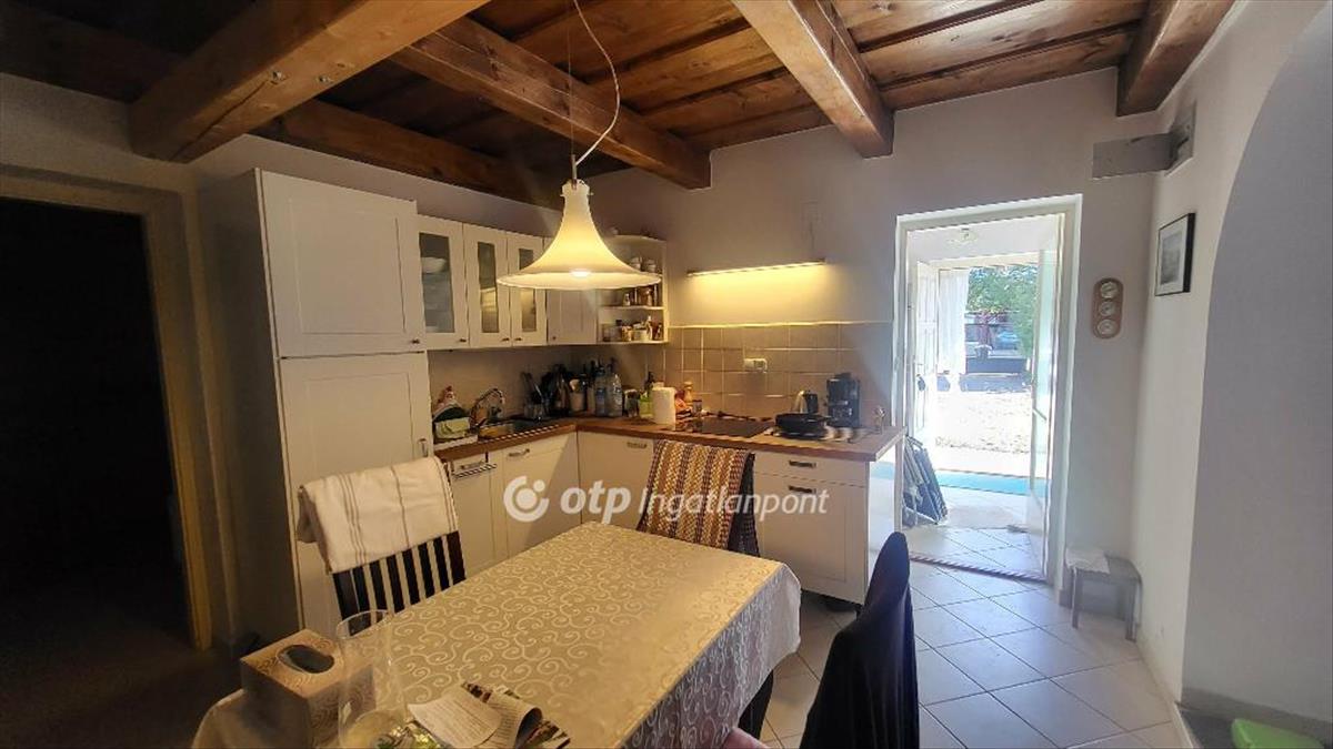 A földszinten egy tágas, amerikai konyhás nappali került kialakításra, amely ideális teret biztosít a családi együttlétekhez és a vendégfogadáshoz. a nappalihoz praktikus kamra kapcsolódik, amely kényelmes tárolási lehetőséget nyújt. Ezen a szinten található továbbá egy külön nyíló szoba, valamint egy fürdőszoba WC-vel, így a mindennapi kényelem teljes mértékben biztosított. a kő és téglaépítésű ingatlan fűtése többféle gazdaságos és kényelmes megoldással biztosított, megtalálható benne kandalló, klímaberendezés és fűtőpanel is. a sorházhoz tartozik még 500-m2 füvesített terület is ami bőséges lehetőséget kínál baráti összejövetelekhez, medence vagy egyéb kényelmet szolgáló tevékenység kialakításához.