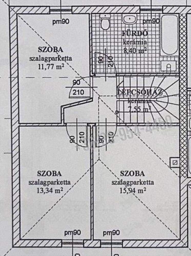 Emelet ( 57 nm ): 3 háló (16 nm , 13 nm , 12 nm ), fürdő WC-vel, közlekedő