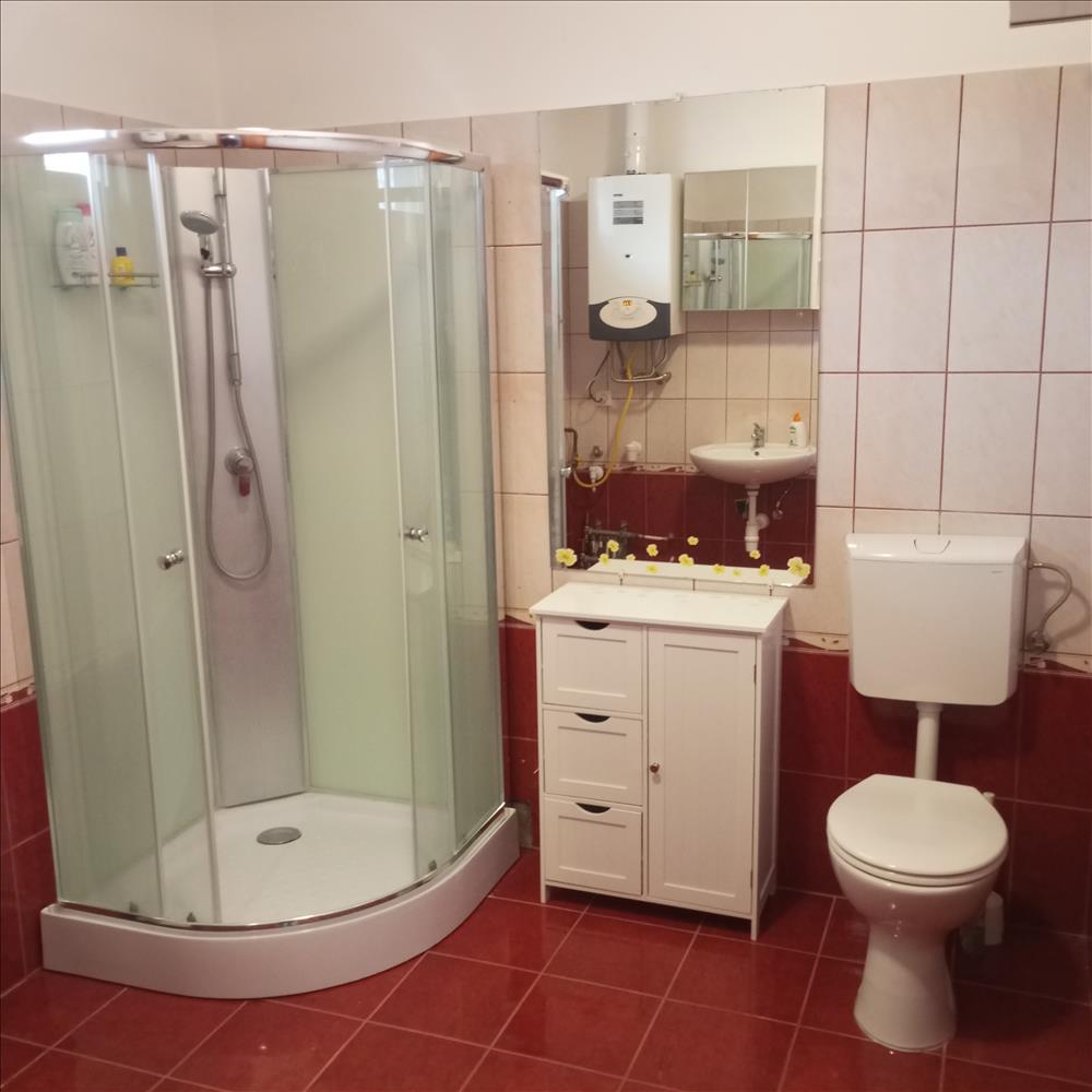 A fürdőszoba, Wc egyben van, ablakkal rendelkezik. Mérete 5, 60 m2.