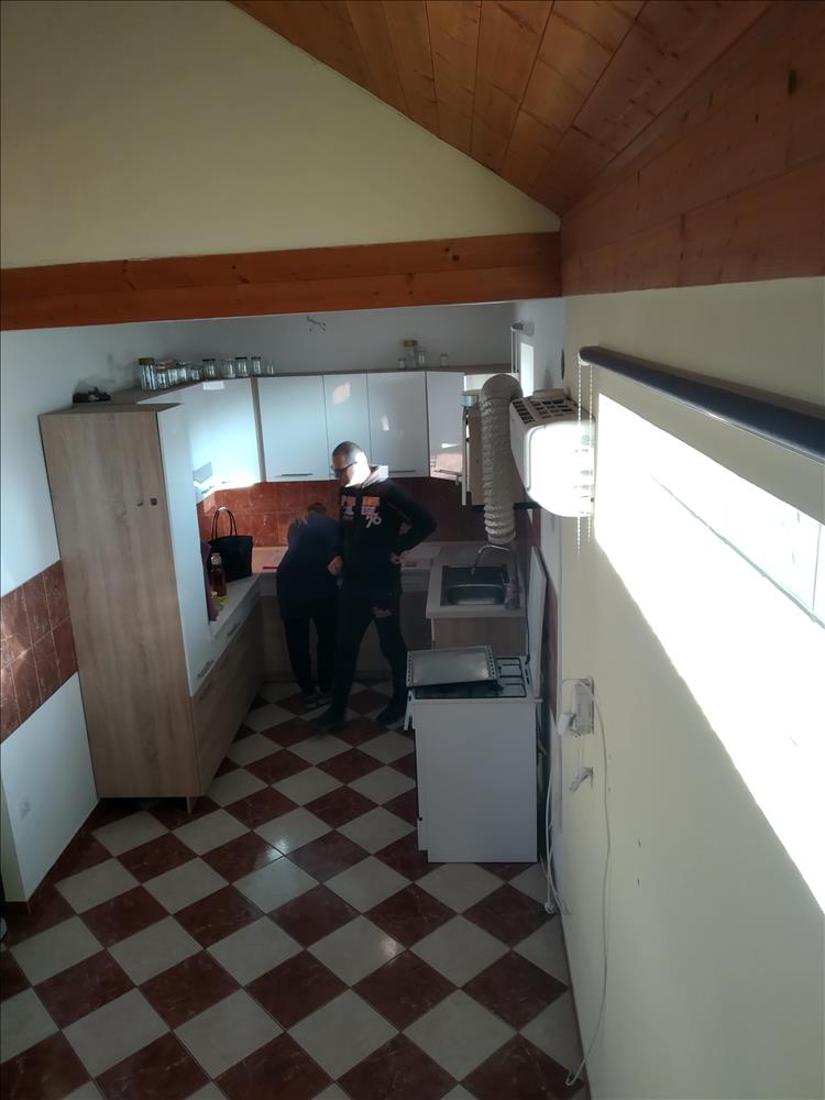 Amerikai konyhás nappali, a konyhabútor, a gáztűzhely és a nappaliban lévő kamino kandalló az eladás részét képezi. a nappali mérete: 24, 20m2.