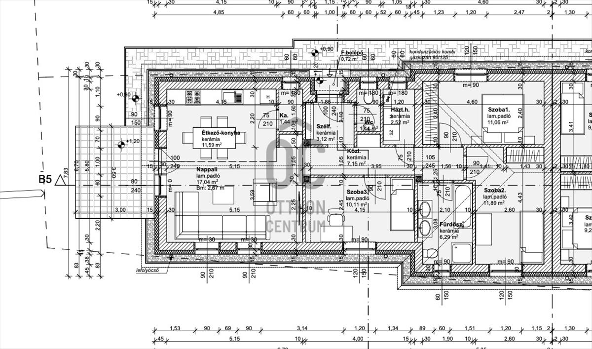 - fűtés, melegvízellátás kondenzációs kazánnal, a hőleadás minden helyiségben padlófűtéssel lesz