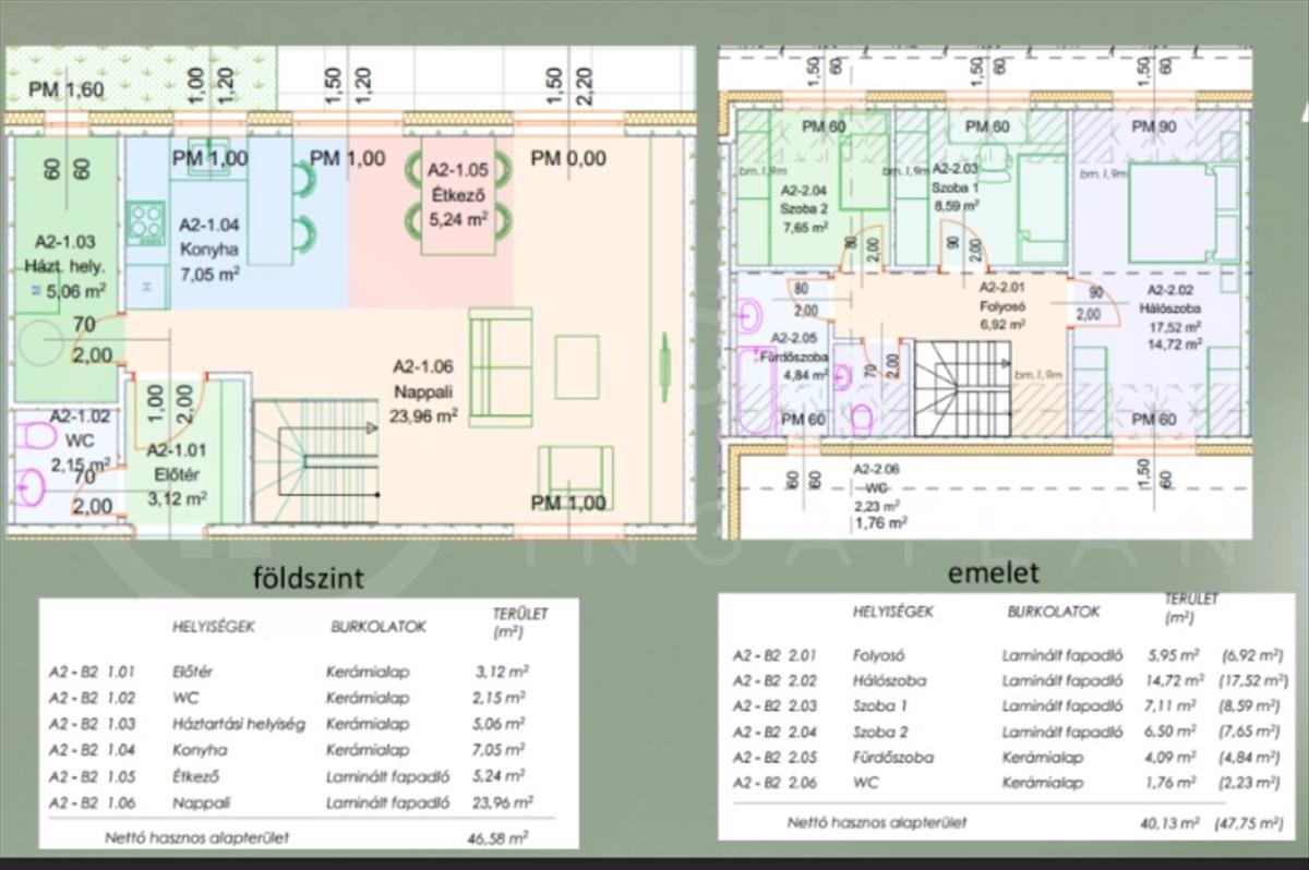 • Földszint: Tágas, napfényes amerikai konyhás nappali étkezővel, valamint egy vendég mosdó-WC.