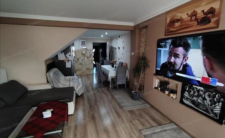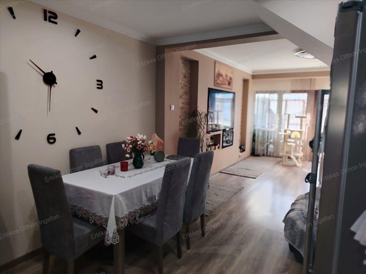 A ház előtt kis virágos előkert, s udvar és garázs is tartozik hozzá. a lakás földszinti részén előszoba, wc, nappali -étkező, külön konyha, s tágas terasz található. a terasz beüvegezett, ablakokkal nyitható. Csodás fényözön áramlik be a nappaliba is ezáltal.