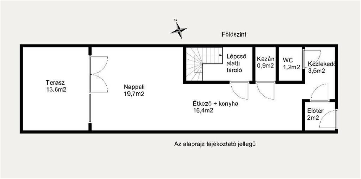 - Földszinten helyezkedik el a konyha - étkező egy légtérben a tágas, világos nappalival, előtér, wc + kézmosó, lépcsőház alatti praktikus tároló helyiség, kamra kazán számára