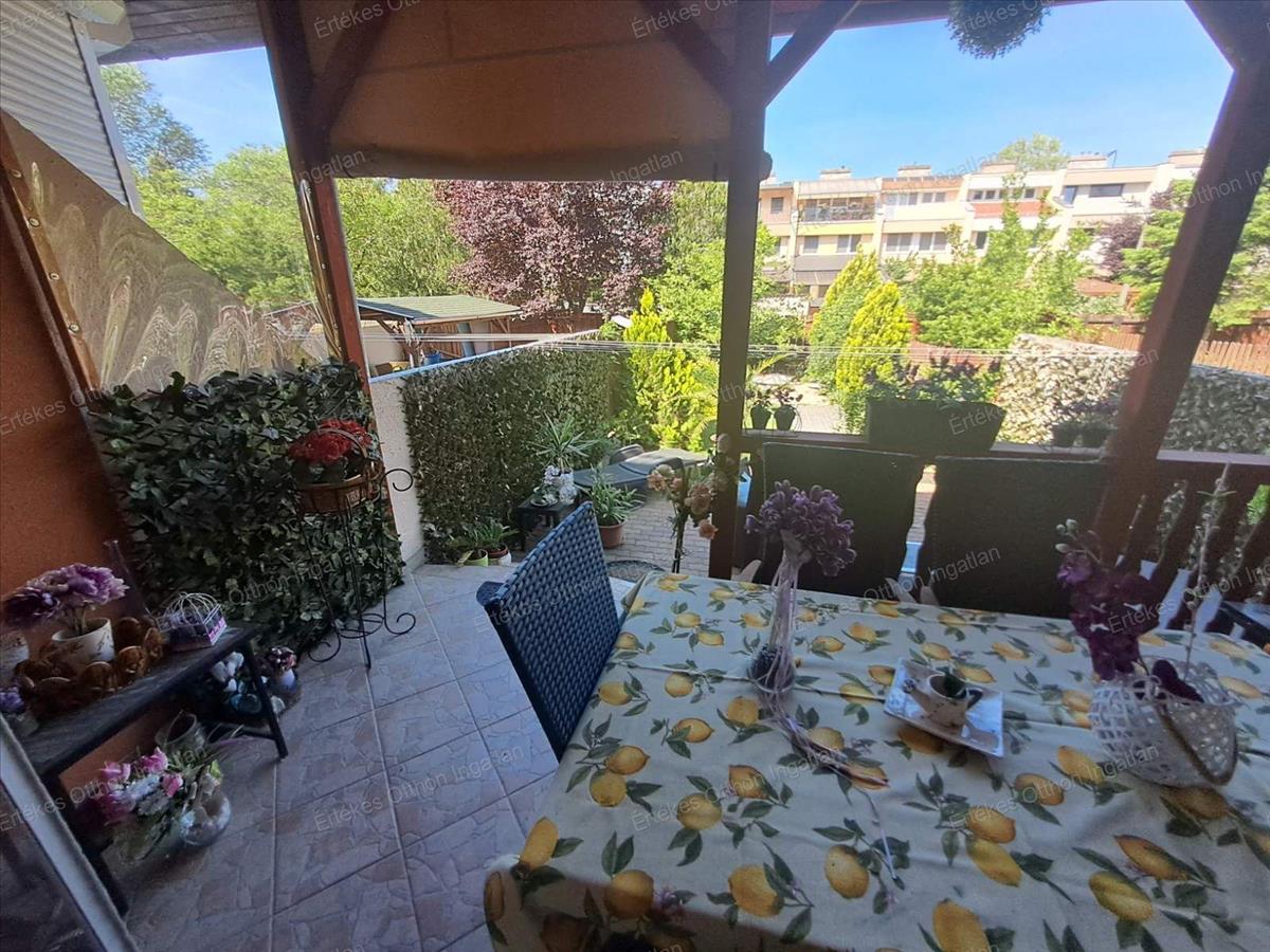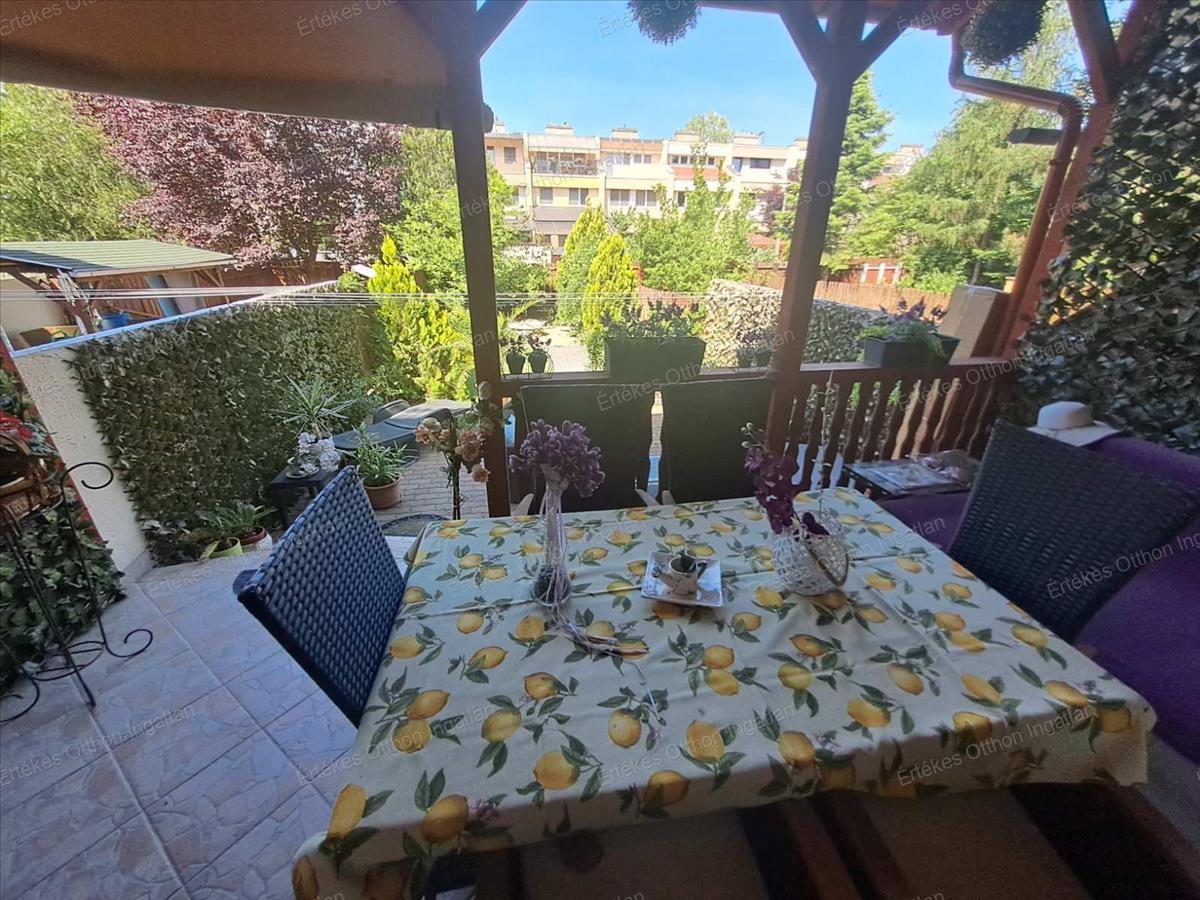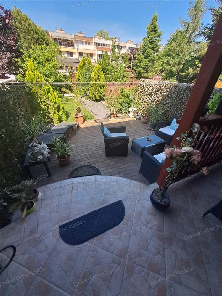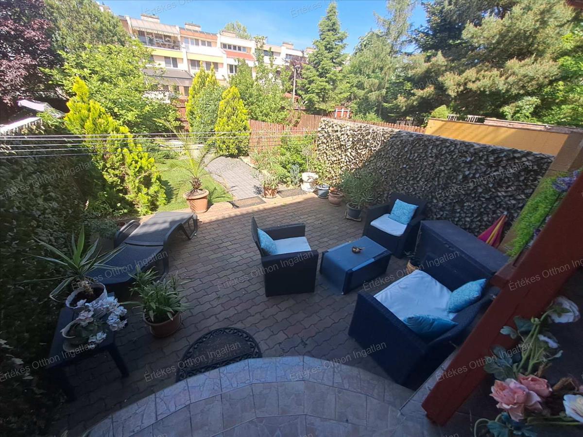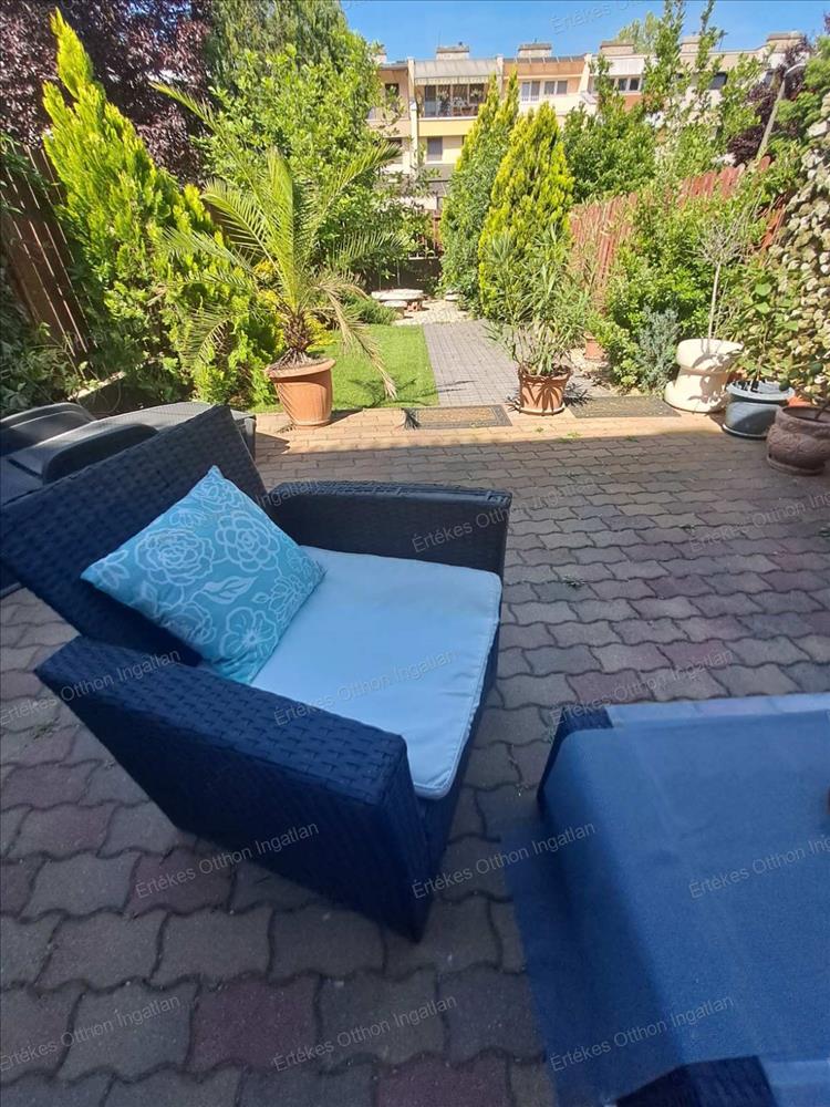 A Korányi kertvárosban kínálok egy 3 szintes sorházi ingatlant.Az ingatlan egy igen szépen ápolt pihenőkerttel kapcsolatos, melyben /mű/füves rész és térbúrkolattal ellátott kiülős is van, a nappalival kapcsolatos nagyon szép terasszal. Az udvaron fúrott kút található. a telekre két bejárat van, a ház előtt és a telek végén is.