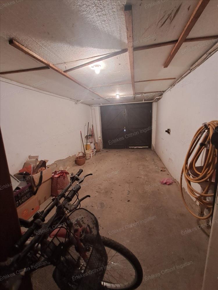 A ház alatt garázs van és teljes részben pince, mely tartalmazza a mosókonyhát, 2 pincerészben tárolóhelyiséget is. Kitűnően alkalmas a garázs esetleg bármilyen vállalkozás folytatásához, illetve irodának, stb