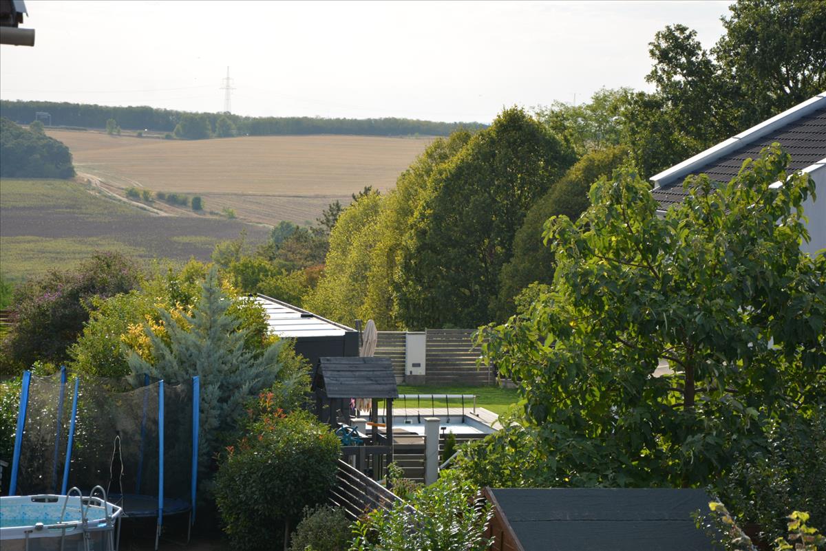 A ház világos, tágas terekkel rendelkezik, a panorámás teraszról és az ápolt kertből pedig gyönyörű kilátás nyílik a környékre. Az utca végén játszótér és kiserdő biztosítja a nyugodt, családbarát környezetet.