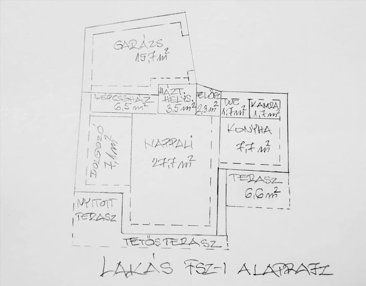 Földszint: előszoba-WC/mosdó, nappali, konyha, dolgozószoba, mosókonyha, teraszok, kert, garázs az utca felől
