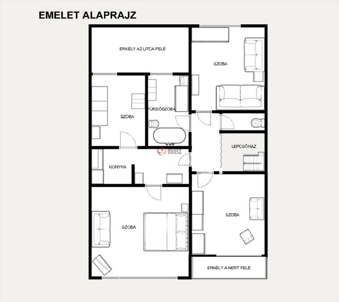 200 nm saját, körbekerített udvar – közvetlen megközelítéssel az erkélyről