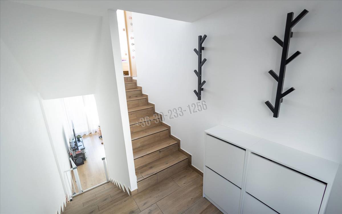 Eladó Sopronban egy modern szinteltolásos, 2019-ben épített 3 szobás, kertkapcsolatos, nettó: 93, 21 m2, bruttó:115 m2-es sorházi lakás az Uszoda utcában, városra néző panorámás kilátással, saját garázzsal.