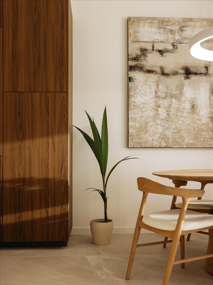 A konyha ablakán kívül, egy bájos citromfa eredeti mediterrán érintést ad hozzá, gyönyörűen keverve az otthoni & apos; s tiszta északi design. Ezen a szinten közvetlen hozzáférést biztosít a saját teraszhoz, ideális az alfresco étkezéshez, pihenéshez és a golfvölgy feletti látványos naplementéhez.