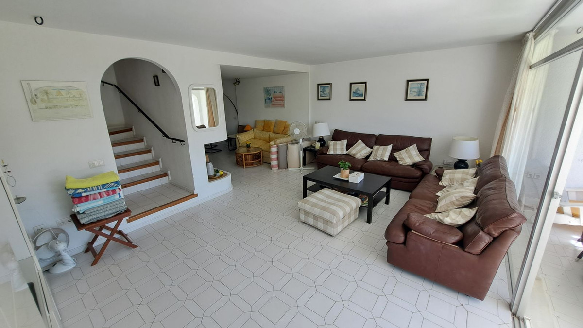 Örömmel kínáljuk ezt a gyönyörű duplex városi házat a Miraflores Resort kényelmes helyén. Az ingatlan áll: - Tágas társalgó nyitott kandallóval és étkezővel vezet a nagy terasz, teljesen felszerelt konyha, hálószobával, saját fürdőszobával és öltözővel, két további hálószoba, családi zuhanyzóval és ruhatárral. Sunny orientáció. Kellemes közös úszómedence bárral, étteremmel és szubtrópusi kertekkel. További funkciók: további terasz, 24 órás biztonság. Teljesen bútorozott. Sétáló távolságok a strand és a buszmegálló.