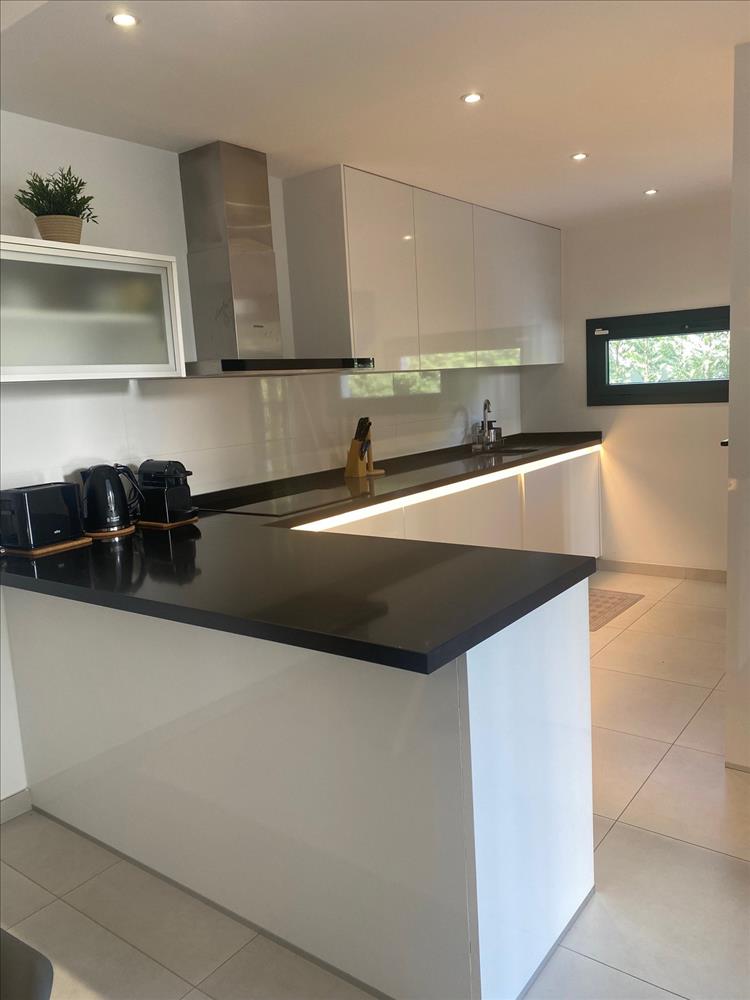A belsŠhelység világos nappali-étkezŠközvetlen hozzáférést biztosít a teraszhoz, mellett egy modern nyitott-terv konyha, felszerelt high-end készülékek és mosoda. Ezen az emeleten, akkor is elérheti az alagsort, ahol megtalálja a garázs és a tároló szoba, valamint egy praktikus tároló terület, egy hozzáadott érték, amely ritka az ilyen típusú ingatlan.