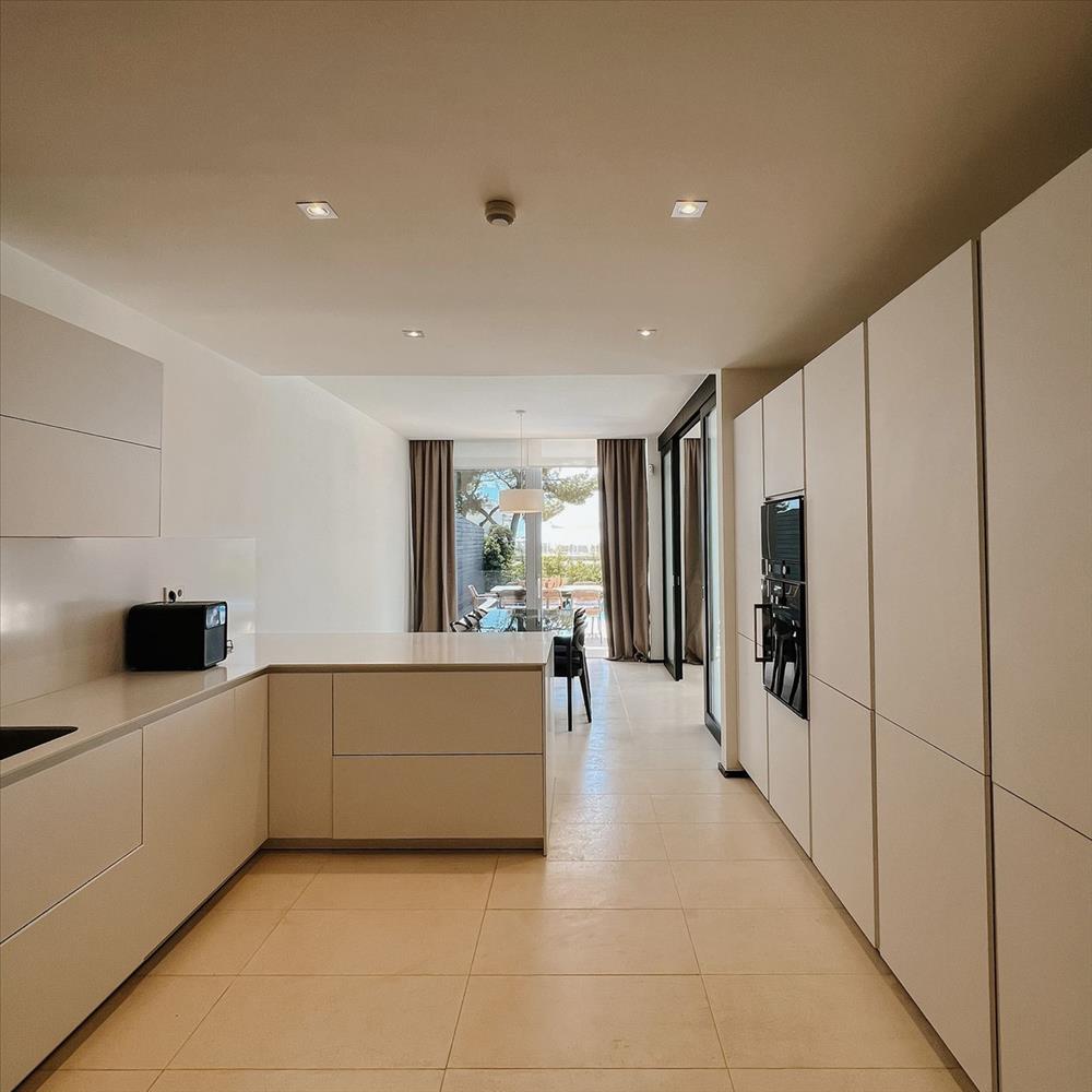 3 Hálószoba és 3 lakosztály fürdőszoba plusz 1 vendég wc, Kilátás a tengerre a földszinten, az első emeleten és a szoláriumban. Privát garázs két autónak és raktárnak. Padlófűtésrendszer az egész házban. Van egy lift, ami felmegy a garázsból a szoláriumba, teljesen beépített 480 méter. Terasz saját medencével 147 méter és szolárium