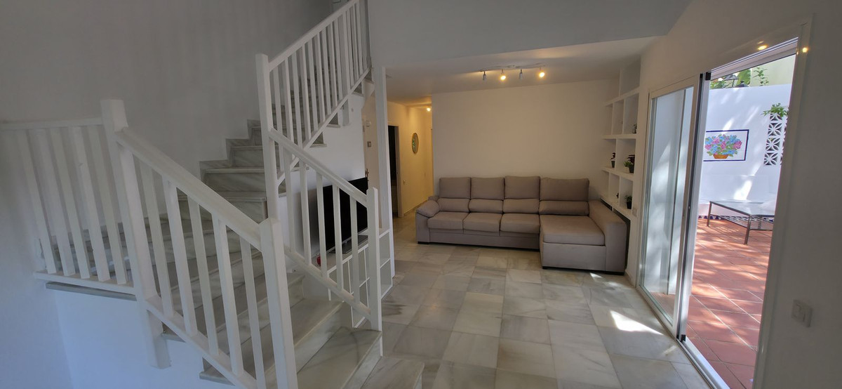 Corner Townhouse tengerpart San Pedro és Estepona között. Nemrégiben felújított ez a 4 ágy 3 fürdő ingatlan található a csodálatos Benamara komplex sétára a strandtól. Modern vadonatúj nyitott terv konyha vezet az étkező és a nappali. 2 Hálószoba a földszinten, egy fürdőszobában. Nagy terasz, ülőhellyel és mosókonyhával. Az emeleten további 2 hálószoba és 2 fürdőszoba. Master hálószoba fürdőszobával és terasszal, kilátással a gyönyörű kertre és medencére. Az ingatlan már megreformált egy jó szabvány új elektronika, légkondicionáló, 2 új fürdőszoba és új ablakok.