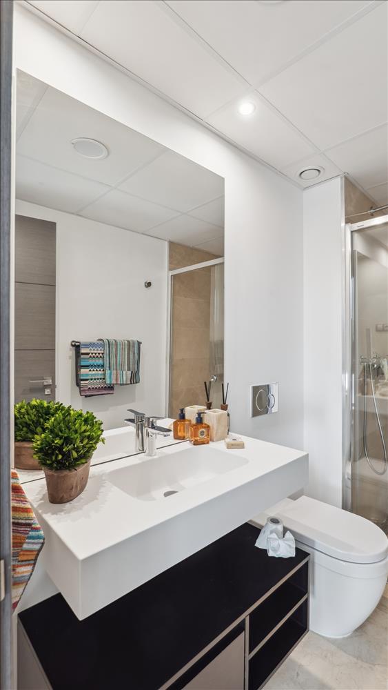 A földszinten található egy teljesen felszerelt konyha, egy világos nyílt terep, és közvetlen hozzáférést biztosít egy nagy terasz, amely egyenesen a közösségi medence - ideális a zökkenőmentes beltéri-kültéri élet. a ház mellett egy saját kertterület ad egy zöld pihenő, tökéletes pihenő vagy szabadtéri étkező.