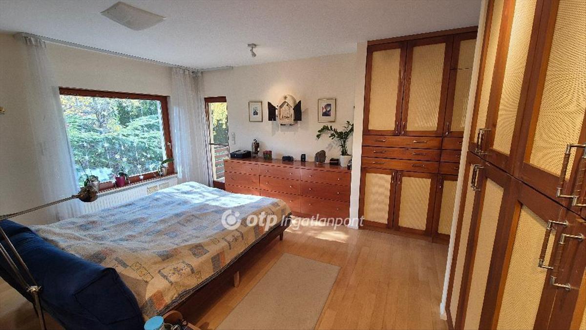 Az emeleten: három nagy ablakos, napfényes és erkélyes hálószoba, fürdő (dupla mosdóval, bidével, sarokkáddal és zuhannyal) és háztartási helyiség.