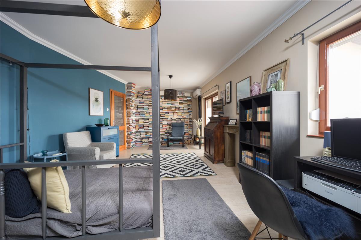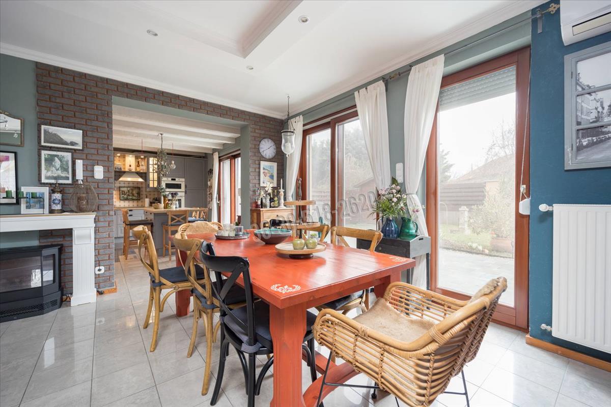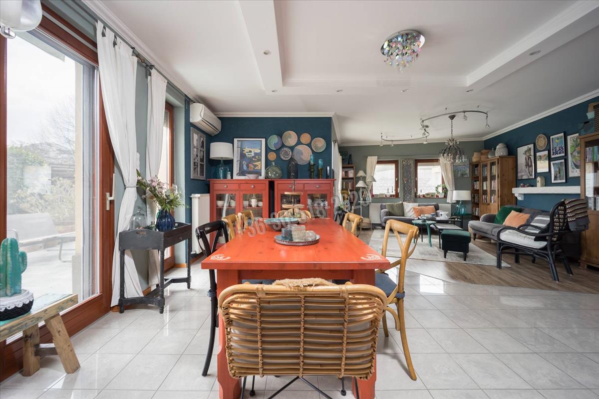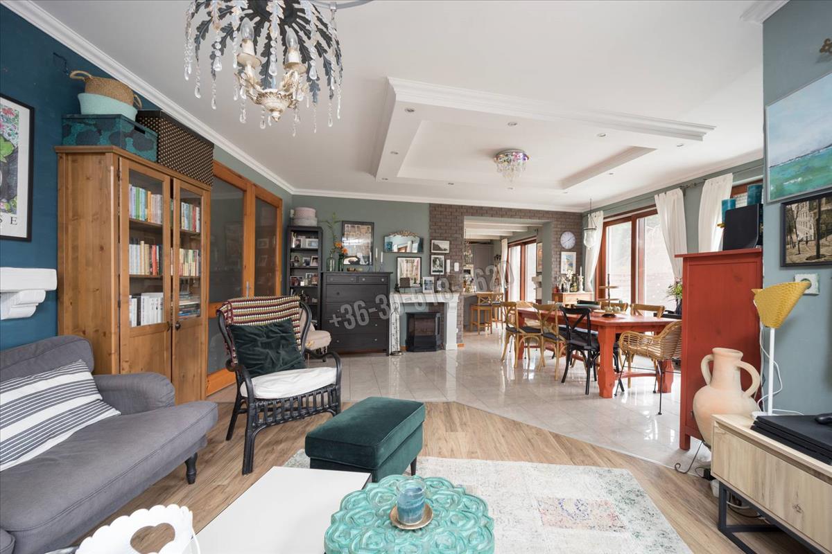 A három szinten elhelyezkedő, közel 214 m²-es lakótér rendkívül átgondolt kialakítású. a földszinten található tágas nappali, étkező és konyha egy légtérben helyezkedik el, amely világos, barátságos központi életteret teremt, tökéletes mind a mindennapi élethez, mind a vendégek fogadásához. Az emeleti és tetőtéri szinteken kialakított hálószobák kényelmes életteret biztosítanak akár nagyobb család számára is, a jelenlegi négy hálószoba mellett további egy szoba is könnyedén kialakítható. a beépített konyhabútor, a praktikus tárolóhelyiségek, valamint a két fürdőszoba és külön mellékhelyiség mind a funkcionalitást erősítik.