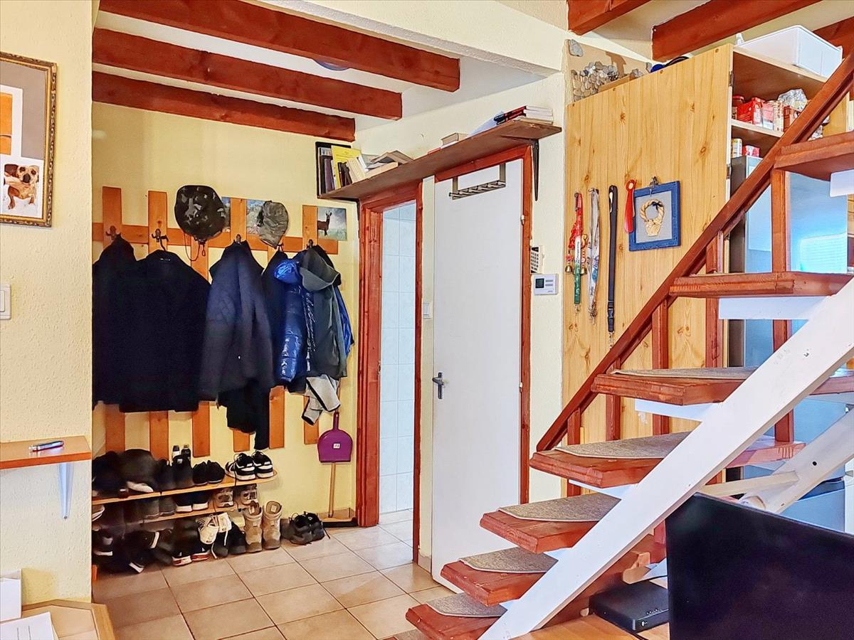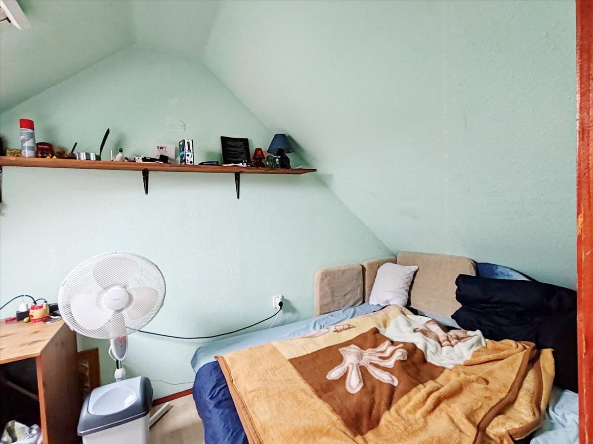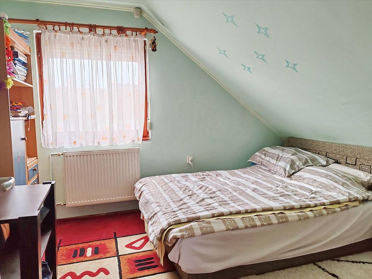 A tetőtérben 2 szoba és egy kis nappali a helyiségek. a tetőtéri szobák laminált padló burkolatúak, az alsó szint járólapos.