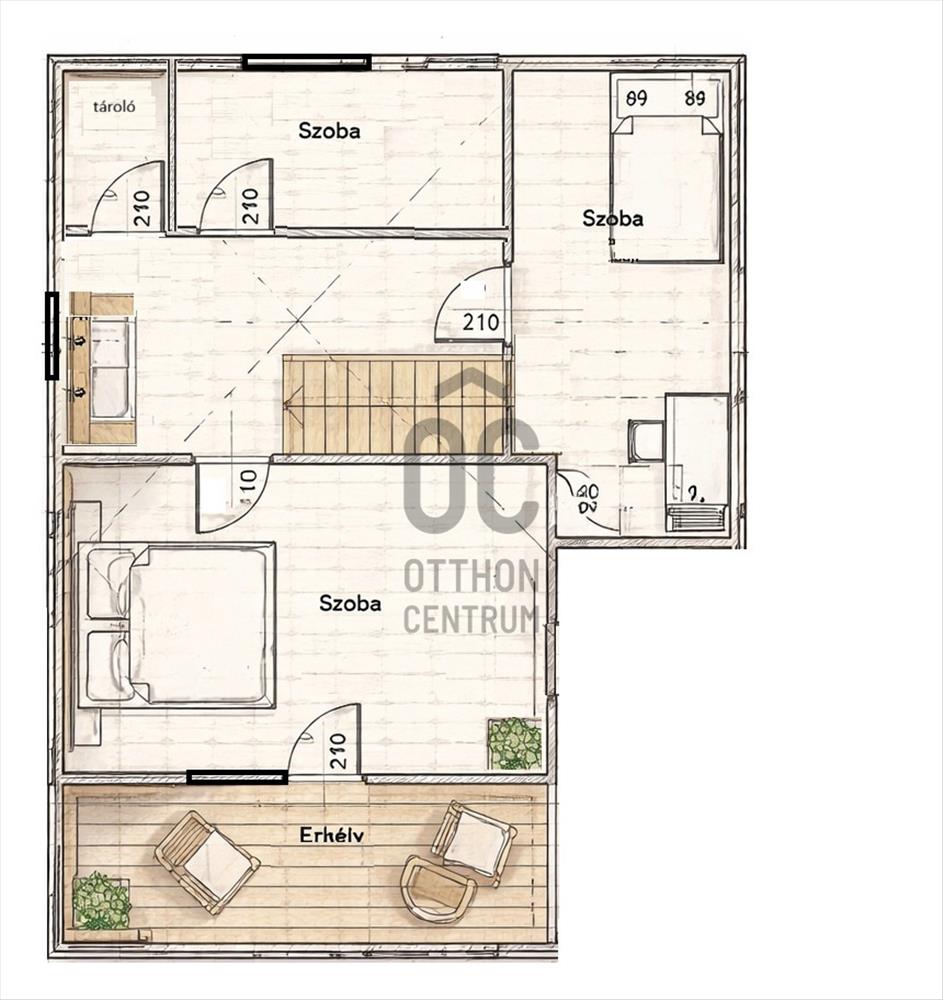 • nappali + 3 háló + tárolóhelyiség az emeleten