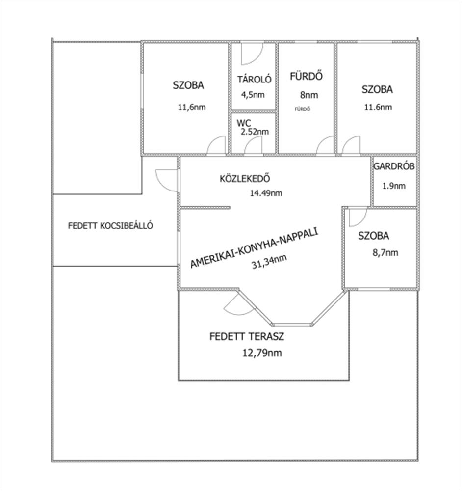 Földszintes, 4-lakásos sorház utcafronti, 207nm telken fekvő, nettó 91, 55nm-es lakásának elosztása: