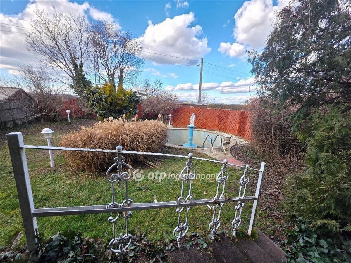 Az utca felőli és a hátsókert is parkosított, virágokkal beültetett, a hátsókertben sütő és medence lett kialakitva.