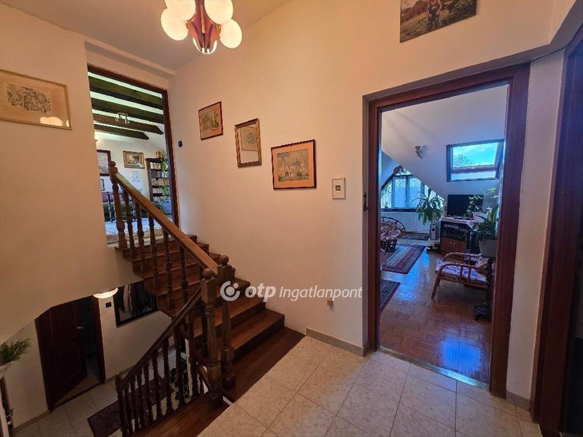 Emeleten 2 napfényes szoba, mely az előkertre és a hátső kertre néz, illetve a tetőtér is be van épitve, ahol szintén egy szoba található.
