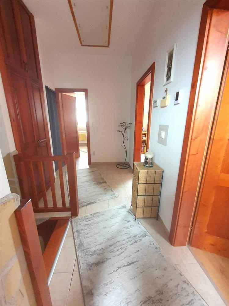 A földszinten egy szélfogó, előszoba, konyha-étkező+kamra, nappali, 1 szoba, zuhanyzós fürdőszoba wc-vel, az emeleten 3 szoba, közlekedő, fürdőszoba sarokkáddal és wc-vel, valamint egy kis méretű gardób biztosított.