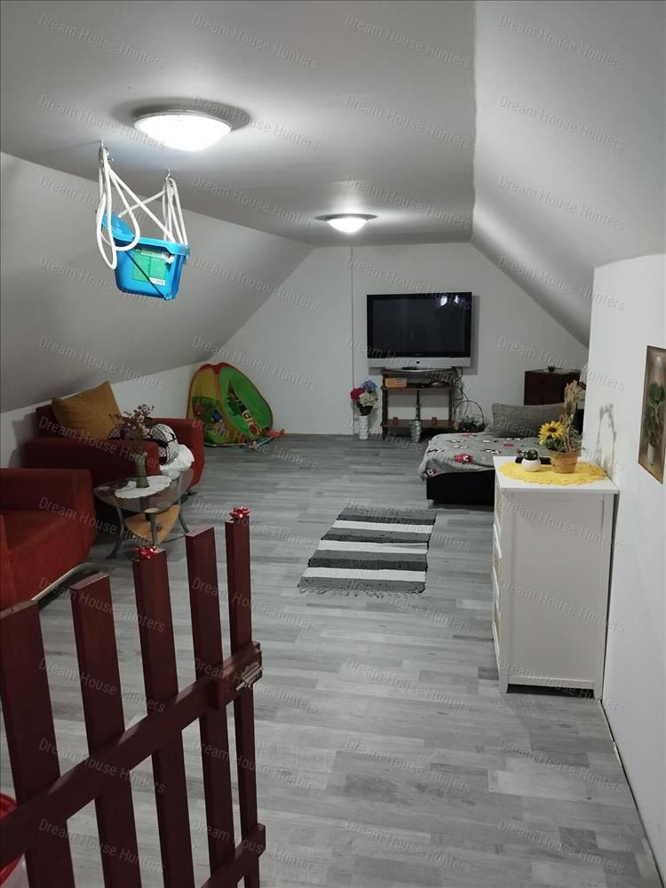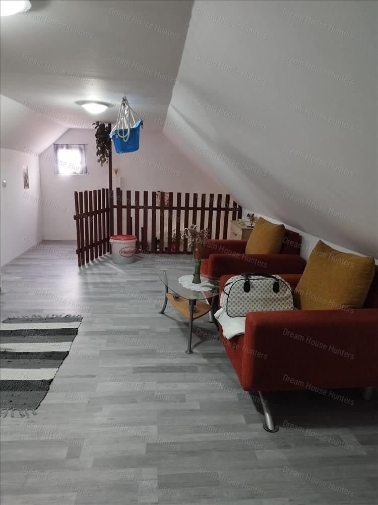 a tetőtérben egy hangulatos hálórész (kb. 20 M² hasznos tér), amely akár gyermekszobának is kialakítható