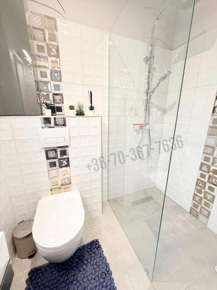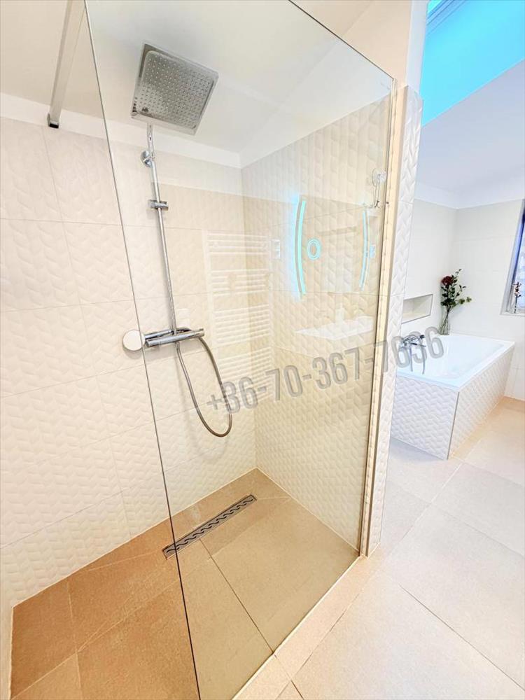 Az alsó szinten található még egy zuhanyzós fürdőszoba, egy speiz és egy praktikusan kialakított konyha.