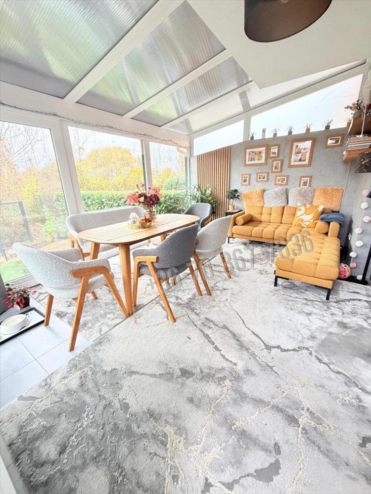 Az utólag kialakított télikert elektromos padlófűtéssel és hűtő-fűtő klímával egész évben tökéletes pihenőhely – akár egy jó kávé mellé reggel, akár egy pohár bor mellé este.