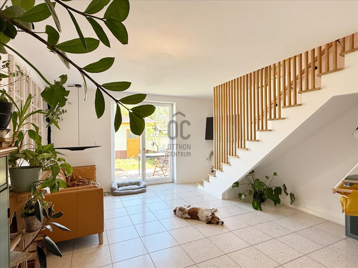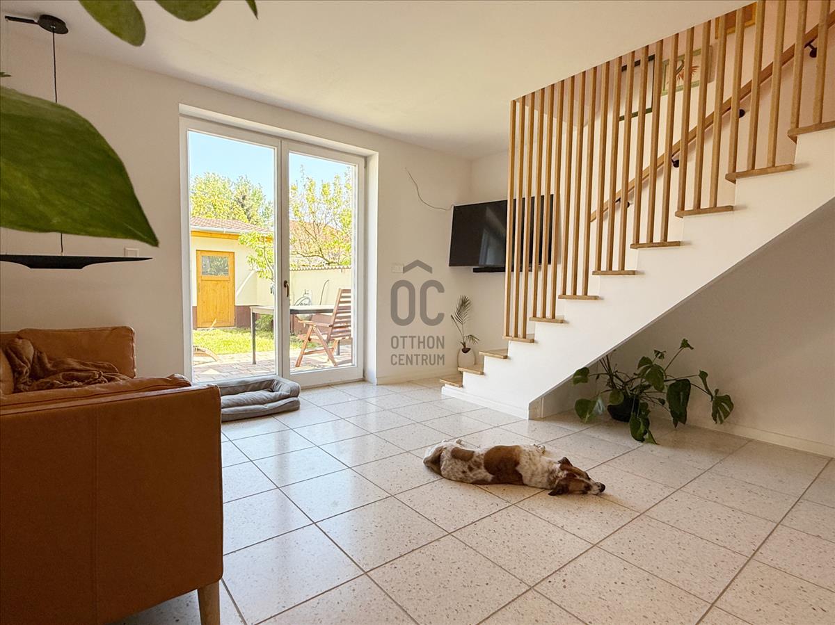 Eladásra kínálunk egy 2023-ban épült, modern emeletes sorházat Burgundia városrészben, saját elő- és hátsó kerttel. Az ingatlan egy zsákutcában található, közvetlenül a Ligeti-tó és a kerékpárút mellett, a Duna és az ártéri erdő közelében, így nyugodt, természetközeli környezetben kínál otthont, ugyanakkor könnyen megközelíthető marad.A ház kialakítása kifejezetten családok számára ideális. a földszinten tágas nappali, konyha-étkező kamrával, valamint külön wc kapott helyet, az emeleten pedig két hálószoba és egy félszoba – jelenleg gyerekszobaként használva – található. a fürdőszoba szintén az emeleten került kialakításra. a tárolási lehetőséget padlás, hőszigetelt tetőtér és külön kertitároló biztosítja, emellett műhely is tartozik az ingatlanhoz.
