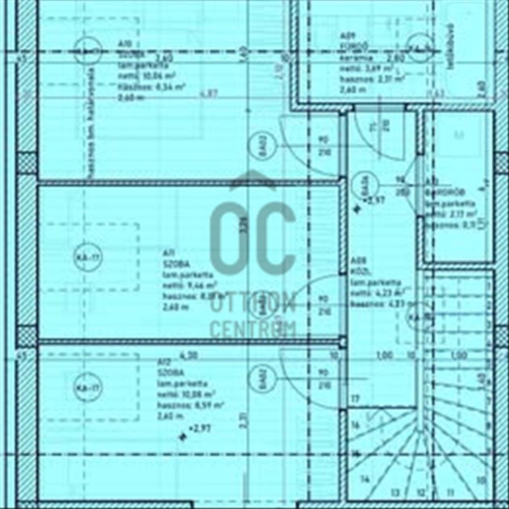 - 96 Nm-es. Földszinten 1 háló, konyha-étkező, kertkapcsolatos nappali, fürdő+WC és tároló. Tetőtérben 2 háló, dolgozószoba, és fürdő.